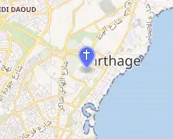 On account of the political difficulties related to the abdication of Charles X and the death of Hussein II in 1835, the act did not enter into force until 1840, after the terms had been confirmed by Ahmed I Bey.[2] The location was chosen beforehand by the consular agent Jules de Lesseps, son of the consul general of France Mathieu de Lesseps:[3] it is the site of the ancient Punic temple of Eshmoun on the Byrsa, which was renamed "Mount Louis-Philippe".[2]