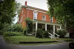 Charles Berryhill was a Pennsylvania native who moved in Iowa City in 1839. Described as a "merchant, farmer, and speculator," he was a charter member of the local Old Settlers' Association.[2] His house was built over a period of about 15 years. The two-story brick main block is the original portion of the house, built in about 1850. It features a bracketed cornice, decorative window hoods, and columned porches. There are various brick and frame additions that were built onto the back of the house in the succeeding years. There is also a small vernacular stone structure behind the house that is reminiscent of similar structures built in Iowa City in the 1840s and the early 1850s.