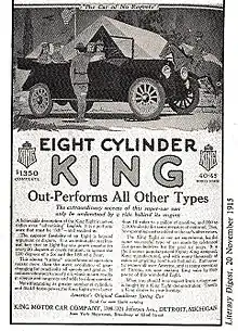 King went to Europe for two years to study automotive design in 1908. When he came back in 1910 he started the King Motor Car Company with the knowledge he acquired. He was the first automaker to make cars with left-hand steering. He also was the first to successfully make a practical working V-8 engine. The King automobile called "the Eight" was advertised as "The Car of No Regrets." The King automobile was the only vehicle to feature left-hand steering at the 1912 New York Auto Show. He left the King Automobile company in 1912, however held full possession of his patents. The King name for the car company continued for many years thereafter and produced up to 1000 automobiles under this name. The company was ultimately absorbed by the Studebaker Car Company.[4][20]