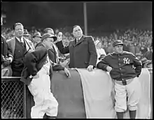 Hurley's entry into politics was in 1919, when he won election to the Cambridge school committee, on which he served until 1931. In 1930 he ran as a Democrat for the position of Massachusetts State Treasurer, winning three consecutive two-year terms.[2] Each year he defeated his Republican opponent by wide margins, leading to calls for him to stand for governor.[1] Governor Joseph B. Ely appointed Hurley to the state administration's committee which distributed federal New Deal relief money, and was aligned with the Democratic Party faction opposed to James Michael Curley, the powerful Mayor of Boston. This faction was generally opposed to the influx of federal money,[3] and the party infighting meant that Hurley minimized the number of Curley supporters the committee engaged,[4] and that the distribution of relief aid was hampered by the ongoing dispute.[5] In 1936 he won the Democratic Party nomination for governor (Curley, the incumbent, was seeking a Senate seat), and then won the general election, defeating the Republican candidate, former state treasurer John W. Haigis.