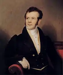 Russell was born on September 13, 1796 in Newport, Rhode Island. He was the third child and second son of Ann (née Handy) Russell and Maj. Thomas Russell, who served in the Continental Army under the Marquis de Lafayette and was a descendant of Elder William Brewster of the Mayflower.[2] His maternal grandfather was Charles Handy, a prominent merchant and landowner from Newport.[3] Through his uncle Johnathan Russell, he was a first cousin of Jonathan Russell, a U.S. Representative from Massachusetts and U.S. Minister at Stockholm who was one of the five commissioners who negotiated the Treaty of Ghent with Great Britain in 1814, ending the War of 1812.[2]