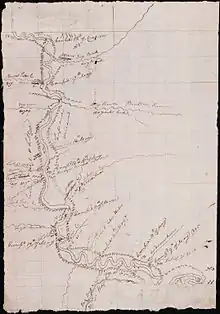 The Lewis and Clark Expedition (also known as the "Corps of Discovery") named many of the features located in the refuge, and several important events occurred while the expedition passed through the area in May 1805. On May 8, the Corps passed the Milk River, named for the amount of sediment contained in the river during the spring run-off.[21] On the evening of May 8, the expedition camped a mile or two above Fort Peck Dam.[22] On May 9, the Corps of Discovery entered what is now the CMR NWR. That day, they passed what Meriwether Lewis called Big Dry Creek (now submerged beneath Fort Peck Reservoir, and known as the Dry Arm).[23] The members of the expedition began to suffer from swollen and red eyes, boils, and abscesses from the amount of alkali in the river and soil.[24][25] At about 5:00 P.M. on May 10, expedition member William E. Bratton was attacked by a grizzly bear. He shot it through the lungs, but the bear continued to charge. Bratton outran the bear, which expedition members later tracked down and killed a few hours later. The creek which emptied into the Missouri River at site of the attack was named Bratton Creek[26][27] (now called Big Timber Creek).[28] Another bear encounter occurred on May 14. In the late afternoon, some of the men in the rear boats spotted a grizzly bear sleeping on a sandbar. Six men approached the bear, which woke up and attacked them. Four men shot the bear (with two bullets going through its lungs), but it continued to charge. Two more men shot the bear, but the men were forced to flee back to the river. Four men dispersed, and fired on the bear again, but it pursued them and chased them down a 20-foot (6.1 m) embankment into the river. Finally, one of the men shot the bear in the head, killing it. Lewis decided to call the creek near the spot where the six men almost died "Brown Bear Defeated Creek"[29][30] (although today it is known as Snow Creek).[31] That same day, the expedition nearly suffered a terrible loss of its journals and instruments. Toussaint Charbonneau was steering one of the expedition's pirogues when a sudden thunderstorm overtook them. The pirogue overturned, throwing nearly all of the expedition's journals, maps, papers, navigational and survey instruments, and medicine into the river. Charbonneau did nothing to save these materials. But Sacagawea, holding her three-month-old child Jean Baptiste, calmly stood in the rushing water and retrieved nearly all the supplies.[32][33] The expedition spent two days at the site, drying out their instruments and papers.