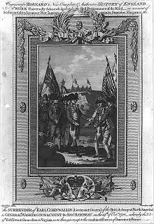 General O'Hara represented the British at the surrender of Yorktown on 19 October 1781, as Cornwallis' adjutant, when the latter pleaded illness. He first attempted to surrender to French Comte de Rochambeau, who declined his sword and deferred to General George Washington. Washington declined and deferred to Major General Benjamin Lincoln, who was serving as Washington's second-in-command and had surrendered to General Clinton at Charleston in May 1780. O'Hara was exchanged on 9 February 1782, and was sent to the Caribbean in command of a detachment of reinforcements. Following the conclusion of the war with the Treaty of Paris he returned to Britain having been promoted to major general.[2]