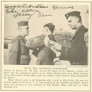 Major Horner was awarded the Silver Star for action in Oran, Algeria. The official U.S. Army citation for Major Horner's first Silver Star reads: