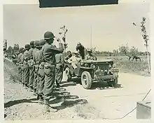 Wounded in the heart (which would affect him for the rest of his life), he spent the next few weeks recovering in the hospital and soon returned to the command of his battalion. He again led the battalion in the Meuse-Argonne Offensive in early October 1918, where it captured Hill 272, a dominant terrain feature in the 1st Division's sector which had brought the division to a standstill for three days. After personally observing his battalion's objective, he gave verbal orders to his company commanders and outlined his plan of attack. On October 8 the division artillery concentrated fire on the hill and Ryder's battalion, with Ryder, as at Soissons, again leading from the front, attacked the hill at 8:30am the next day, under cover of a thick fog and supported by machine guns and a huge artillery barrage. Working in small units to outflank the enemy machine guns and mortars, capturing or destroying enemy positions, the battalion had, by 11:00am, secured all its objectives and captured more than 50 machine guns and began to consolidate its position. For his personal leadership in the battle Ryder was awarded with a second Distinguished Service Cross, two of twenty five to be awarded to men of the 1st Division.[2] World War I came to an end just over a month later with the signing of the Armistice with Germany coming into effect on November 11, 1918 at 11:00am. Ryder's war was over and the personal lessons he learned would remain with him and serve him well in the future.