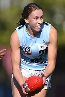 Charlotte Wilson (born 29 December 2000) is an Australian rules footballer playing for Carlton in the AFL Women's (AFLW). She was drafted by Carlton with the 27th pick overall in the 2018 AFLW draft.[1] Wilson made her AFLW debut in round 5 of the 2019 season.[2]