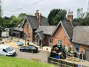 The station was located 0.5 miles north of Cheadle at the point where the Manchester Road passes over the line on a bridge. The station was situated on the west side of the bridge, with the main buildings being on the south side of the line - these still survive in non-railway use. There was a small brick-built shelter for passengers on the north side of the line. A goods shed and two-line siding was on the line's south side.[3]