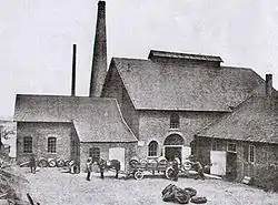 After the Hitler's rise to power in 1933 the company gradually began to concentrate on raw materials for the production of explosives. Since 1937 women were employed as workers. After the outbreak of World War II, with the maleworkforce in military service, women were conscripted for work at the company. Since 1940 Chemische Fabrik Kalk used approximately 460 forced laborers from Poland and later the Soviet Union.[20] The factory was heavily damaged during the bombing raids which started in 1942. In 1943 the sulfuric acid plant was completely destroyed, a year later almost all of the production came to a standstill. On 6 March 1945 the grandson of the founder, Fritz Vorster Jr. closed the factory after 80 percent of the production facilities had been destroyed. At this time the company had only 100 employees.[21][22]