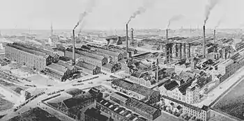 In 1860 Grüneberg finished his doctoral studies and received a Ph.D. from the University of Leipzig.[7] His research was in the field of agricultural chemistry, in particular mineral fertilizers.[8] In 1864 the factory began the production of the fertilizer superphosphate, produced from phosphorite from a newly acquired mine in Nassau an der Lahn. One year later the production of the fertilizer ammonium sulfate begins. In 1866 the factory begins to use the Leblanc process to produce potassium carbonate from sodium chloride.[7] During the Centennial Exposition in Philadelphia in 1876, the company was awarded a gold medal for having first manufactured Potash and Potash salts, according to Leblanc's process, on a manufacturing scale , and for the purity of the products exhibited.[9]