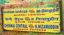 The 12269 / 70 Chennai Central–Hazrat Nizamuddin Duronto Express is a Express train of the Duronto Express category belonging to Indian Railways – Southern Railway zone that runs between Chennai Central and Hazrat Nizamuddin in India.
