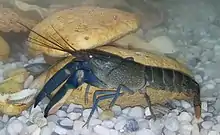 Cherax dispar are a species of crayfish endemic to freshwater inland waterways of south-eastern Australia. As a result of aquaculture, feral populations have become established outside normal range in recent years. Numerous translocated populations have been recorded in coastal drainages in New South Wales, where a large diversity of endemic coastal crayfishes occur. Cherax pose a great threat to the indigenous species in these waterways due to competition and predation, as well as pathogenic concerns and other impacts on the ecosystem.[5] Cherax are prohibited from the United States; they are not allowed to be personally possessed or used for commercial activities due to the danger they pose to the current ecosystem being an invasive species, especially harming other crayfish species in the area.