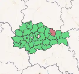 Cheremisinovsky District (Russian: Череми́синовский райо́н) is an administrative[1] and municipal[6] district (raion), one of the twenty-eight in Kursk Oblast, Russia. It is located in the northeast of the oblast. The area of the district is 813 square kilometers (314 sq mi).[2] Its administrative center is the urban locality (a work settlement) of Cheremisinovo.[1] Population: 10,347 (2010 Census);[3] 12,431 (2002 Census);[8] 14,160 (1989 Census).[9] The population of Cheremisinovo accounts for 36.8% of the district's population.[3]