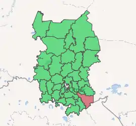 Cherlaksky District (Russian: Черла́кский райо́н; Kazakh: Черлак ауданы, Cherlak aýdany) is an administrative[1] and municipal[5] district (raion), one of the thirty-two in Omsk Oblast, Russia. It is in the southeast of the oblast. The area of the district is 4,200 square kilometers (1,600 sq mi). Its administrative center is the urban locality (a work settlement) of Cherlak.[1] Population: 30,344 (2010 Census);[2] 36,356 (2002 Census);[7] 36,662 (1989 Census).[8] The population of the administrative center accounts for 36.2% of the district's total population.[2]