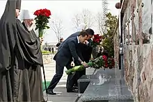 Around the same time, ABC News released its report about the disaster.[71] Shevchenko was the first of the Ukrainian state top officials to arrive at the disaster site early on 28 April. There she spoke with members of medical staff and people, who were calm and hopeful that they could soon return to their homes. Shevchenko returned home near midnight, stopping at a radiological checkpoint in Vilcha, one of the first that were set up soon after the accident.[60]