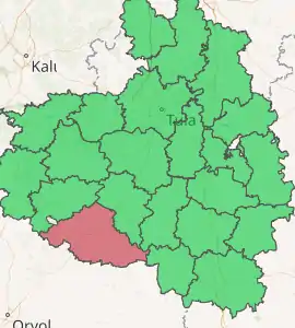 Chernsky District (Russian: Че́рнский райо́н) is an administrative district (raion), one of the twenty-three in Tula Oblast, Russia.[1] As a municipal division, it is incorporated as Chernsky Municipal District.[5] It is located in the southwest of the oblast. The area of the district is 1,614 square kilometers (623 sq mi).[2] Its administrative center is the urban locality (a work settlement) of Chern.[1] Population: 20,476 (2010 Census);[3] 23,006 (2002 Census);[8] 22,605 (1989 Census).[9] The population of Chern accounts for 31.3% of the district's total population.[3]