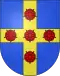 The blazon of the municipal coat of arms is Azure, on a cross Or five Roses Gules.[8]