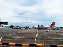 Chiayi Airport has 3 aircraft stands that are capable of accommodating aircraft types such as the McDonnell Douglas MD-90 and ATR 72.[13] Its 1,717-square metre terminal has a capacity of 222,000 a year, while its 45-square metre cargo facility is able to handle 19,035 tonnes of cargo annually.[13] The airport has limited customs and immigration facilities that allows the airport to handle international flights.[6]