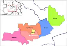 Location of Chibombo town and district in Central Province, Zambia