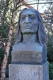 Chief of the Suquamish – Chief Seattle, also known as Bust of Chief Seattle and Chief Seattle Fountain, is a bust depicting Chief Seattle by artist James A. Wehn.[1] It was commissioned by the Seattle Park Board to accommodate the Alaska-Yukon-Pacific Exposition, and initially sat on a fountain for men, dogs and horses.[1]