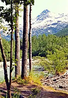 It was a major access route from the coast to Yukon goldfields in the late 1890s. The trail became obsolete in 1899 when a railway was built from Dyea's neighbor port Skagway along the parallel White Pass trail.[4] The Chilkoot Trail and Dyea Site was designated a U.S. National Historic Landmark in 1978. In 1987, the trail was designated a National Historic Site of Canada.[5] In 1998, the centennial of the gold rush, Chilkoot Trail National Historic Site in British Columbia joined with the U.S. park to create the Klondike Gold Rush National Historical Park.