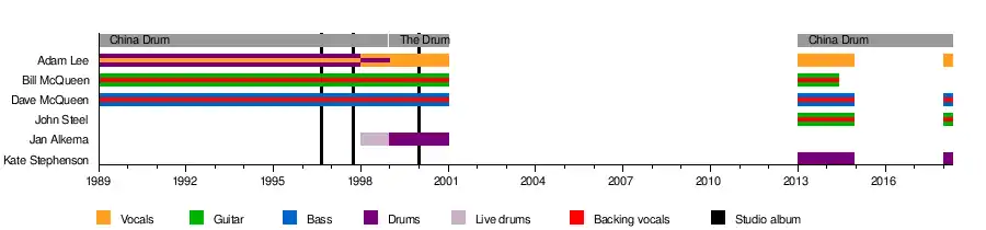 - Adam Lee – vocals (1989–2000, 2013–2014, 2018–present), drums (1989–1999)