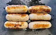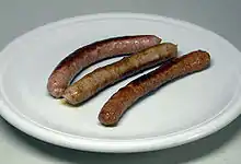 A chipolata (/ˌtʃɪpəˈlɑːtə/[1][2]) is a type of fresh sausage, likely created in France. Sausages by that name appear in the 1903 edition of Escoffier's Le guide culinaire.[3] Chipolatas are often prepared as a relatively thin and short sausage.