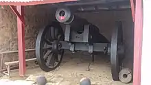 The fort also contains a Bhariva Temple.[4] Females are not allowed to go inside the fort.[5][6][7] The ancient rule is still practised.[5] There is a myth circulating that if a woman enters they might die or become unlucky.[8] Some local residents say that the sound of the big cannon firing caused miscarriages.[8] Journalist Durga Lamichhane went inside the fort and the temple many times, and she said that the local residents created a rumour that she had died.[9] Women's rights activists have spoken out against this in the past.[7] The caretaker of the fort told that "the sight of women, the weaker sex, inside the fort tended to weaken the soldiers in their resolve".[5]