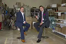 ![]() Dawson (left) and Peter Jones (right) on the set of Peter Jones Meets, 25 September 2012 | |