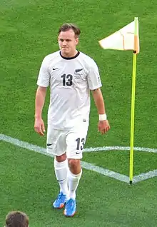 ![]() Chris James playing for All Whites vs Mexico | |||