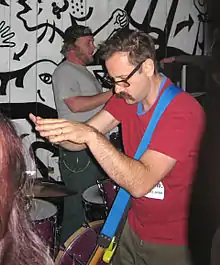 ![]() Chris Johanson playing in Tina Age 13 at the Clarion Alley Block Party, San Francisco, 2007 | |