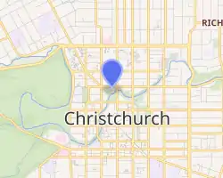 The Christchurch Town Hall, since 2007 formally known as the Christchurch Town Hall of the Performing Arts, opened in 1972, is Christchurch, New Zealand's premier performing arts centre. It is located in the central city on the banks of the Avon River overlooking Victoria Square, opposite the former location of the demolished Christchurch Convention Centre. Due to significant damage sustained during the February 2011 Christchurch earthquake, it was closed until 2019.[1] Council staff initially recommended demolition of all but the main auditorium, but at a meeting in November 2012, councillors voted to rebuild the entire hall.[2] In 2020, the town hall was registered as a Category I heritage building.