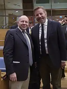 After Night club, the last film directed by Italian director Sergio Corbucci, Christian De Sica became one of the most famous interpreters of the "cine-panettone" (comedies that reach movie theatres during the Christmas season) and formed till 2005 a partnership with actor Massimo Boldi. They acted together in the series of Vacanze di Natale and A spasso nel tempo (1996), Paparazzi (1998), Tifosi (1999) and Christmas in Love (2004). By 2002, their films had grossed 300 billion lire ($150 million).[5] Afterwards, he starred in Natale a New York (2006), Natale in crociera (2007) and Natale a Rio (2008). These films, done in burlesque style, tend to be well received at the box office, if not by critics, at times even outstripping better known and expensively made movies such as the Harry Potter series.[6]