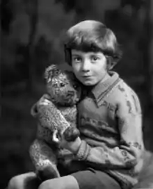 Christopher Robin Milne was born at 11 Mallord Street, Chelsea, London, on 21 August 1920, to author Alan Alexander Milne and Daphne (née de Sélincourt) Milne. Milne speculated that he was an only child because "he had been a long time coming." From an early age, Milne was cared for by his nanny Olive Brockwell, until May 1930, when he entered boarding school. Milne called her Nou, and stated "Apart from her fortnight's holiday every September, we had not been out of each other's sight for more than a few hours at a time", and "we lived together in a large nursery on the top floor."[1]: 19, 21, 55, 97, 104