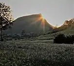 Chrome Hill /ˈkruːm/ is a limestone reef knoll[1] in Derbyshire, England, in the upper Dove valley beside the border with Staffordshire. It is adjacent to Parkhouse Hill, another reef knoll. The walk over Chrome Hill and Parkhouse Hill is known as the Dragon's Back ridge.[2]