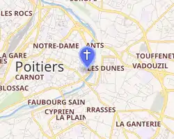 The Church of Sainte-Radegonde (French: Église de Sainte-Radegonde) is a medieval Roman Catholic church in Poitiers, France, dating from the 6th century. It takes its name from the Frankish queen and nun, Radegund, who was buried in the church. Considered a saint, the church became a place of pilgrimage by those devoted to her heavenly intercession. The current church, constructed from the 11th to 12th centuries, was built in a combination of Romanesque and Angevin Gothic architectural styles.[2]