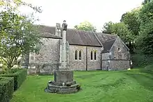 In the churchyard is a World War I memorial of Doulting stone, designed, built and erected by Mr. T. Mills of Wells. It was dedicated by the Archdeacon of Wells on 20 December 1919,[11] and has been Grade II listed since 2004.[12]