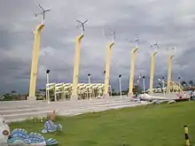 The park consists of seven 3-blade wind turbines which generate enough power to provide the park with four hours of illumination during night time.[1][2][3]