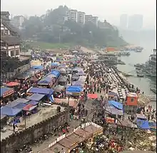 Ciqikou (Chinese: 磁器口; pinyin: Cíqìkǒu; lit. 'Porcelain Port') is an ancient town in the Shapingba District of Chongqing Municipality, People's Republic of China.[1] It was originally called Longyinzhen (simplified Chinese: 龙隐镇; traditional Chinese: 龍隱鎮; pinyin: Lóngyǐnzhèn) and was also known as Little Chongqing.