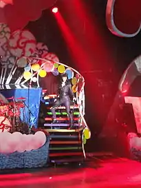 Perry included the song on the setlist for her 2011 world concert tour entitled California Dreams Tour. For performances of the track, the stage was decorated with cartoonish link sausages and rib-eye steak that dangled from the rafters,[21] while Perry was dressed in a catsuit.[22] Along with Perry's performances of "Teenage Dream" and "E.T.", music blog Idolator staff writer Erika Brooks Adickman cited "Circle the Drain" as being a highlight of the tour.[23] The Patriot Ledger's Jay N. Miller found "Circle the Drain" to be "the most rocking" out of the setlist's line-up at TD Garden.[24]