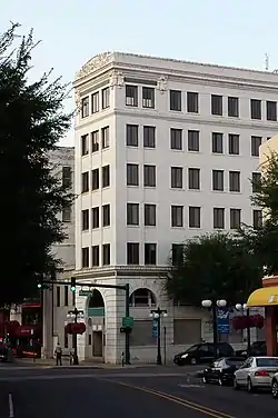 The Citizens Building is a historic commercial building at 723 Central Avenue in Hot Springs, Arkansas. It is a narrow six-story steel and masonry structure, built in 1911–12. It was the first skyscraper to be built in Hot Springs, and was immediately noted for its dignified exterior. The first floor consists of a colonnade of stone arches, above which four identical floors rise, finished in white glazed brick manufactured by the Leon Tiffany Company. The top floor is set off from the lower floors by a band of corbelling, and is topped by a dentillated cornice.[2]