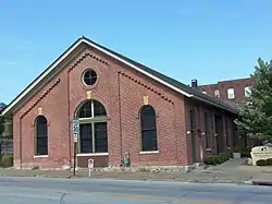 The idea behind the City Market was to bring the city's merchants and their goods together in a single location. However, the merchants had to vacate their individual stores in order to occupy a stall in the City Market.[3] To that end the city hired Thomas W. McClelland to build the public market on Fifth Street in 1872. The facility was damaged in a fire in 1873, and some of the walls still show burn marks.[4]