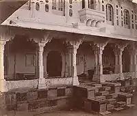 The earliest royal structure he built here was the Royal courtyard or 'Rai Angan',[9][10][11] which was the beginning of the building of the City Palace complex. The court was built at the location where the hermit had advised Maharana to build his new capital.[8][9][10][11][12]