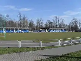 The stadium was originally built in 1935. It was destroyed during World War II and rebuilt in 1948. Further renovations were performed in 2005 (wooden benches replaced by a new seated stand with a capacity of 700) and 2011–2014, when new southern stand was constructed (increasing capacity to the current number of 1,896) and new administrative building opened.[1]