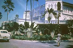 The municipality was then conferred with city status by a Royal charter from King George VI on 22 September 1951, when Singapore was then a Crown colony.[1] The original Municipal Commission was therefore renamed as the City Council, and the Municipal Building was renamed City Hall.