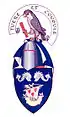 - Crest: Issuing out of a Crest Coronet, a falcon volant Proper, armed, jessed, and belled Or