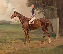 On 18 May 1910 Claude committed suicide age 37, and was found dead by the roadside at Kings Cliffe, Northamptonshire.[14] Claude had arrived at Kings Cliffe from London the night before and upon his arrival, had "set out to walk in the direction of Apethorpe Hall, the residence of Leonard Brassey and Lady Violet Brassey, where he had been an occasional visitor."[14] The physician and coroner concluded that a temporary madness may have been caused by influenza and repeated heavy falls whilst playing polo.[17] His younger brother, Claude Raul,[18] became the fifth Baronet upon their father's death in 1935.[19][lower-alpha 1]
