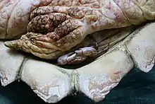 | Caribbean and Indo-Pacific coral reefs | Crab Planes minutus | Eat ectoparasites while living on host | Loggerhead sea turtle (Caretta caretta)[6][16] |  |