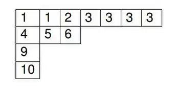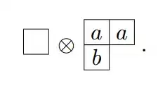 - The last diagram in the curly bracket contains two a in the same column thus the diagram must be deleted. Thereby giving:  - Append the last box to the diagram in curly bracket in all possible ways resulting in: