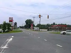 ![]() A view from the center of Climax, looking west on NC Highway 62 | |