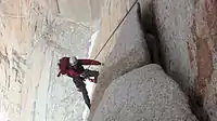 - Rope access: Industrial climbing, usually abseiling, as an alternative to scaffolding for short works on exposed structures.